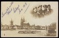 British soldiers inset above a view of the Rhine at Cologne. Photographic postcard, 1919.