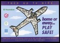 An aeroplane in the sky inside which are people wearing white t-shirts bearing the slogan 'play safe' as a reminder to protect against AIDS. Colour lithograph.
