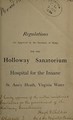 Regulations (as approved by the Secretary of State) for the Holloway Sanatorium Hospital for the Insane, St. Ann's Heath, Virginia Water / [approved by Hugh E. Childers].