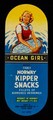 Ocean Girl brand fancy Norway kipper snacks : fillets of kippered herrings : product of Norway : net weight 3 1/4 ozs / packed by Hoem Canning Export Co.