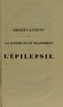 Observations sur la nature et le traitement de l'epilepsie.