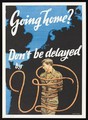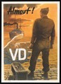 An American soldier tied up with a rope forming the letters "VD" and therefore unable to return from army duty in Europe to his home in America. Colour lithograph by F.O. Schiffers, 1946.