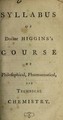 Syllabus of Doctor Higgin's course of philosophical, pharmaceutical, and technical chemistry / [Bry Higgins].