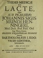 Theses medicae de lacte ... / [Bartholomäus Ludwig Günther].