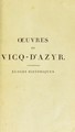 Oeuvres de Vicq-d'Azyr / recueillies et publiées avec des notes et un discours sur sa vie et ses ouvrages, par Jacq. L. Moureau (de la Sarthe) ... Orneés d'un volume de planches, grand in 4*0.