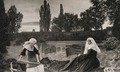 A young nun digging a grave while another nun sits nearby. Process print after J.E. Millais, 1858-1859.