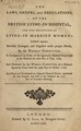 The laws, orders, and regulations of the British Lying-in Hospital, for the reception of lying-in married women / collected together, revised, enlarged, and digested under proper heads, by the Weekly Committee, in pursuance of an order of the Quarterly General Court.