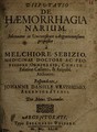 Disputatio de haemorrhagia narium ... / proposita a Melchiore Sebizio.