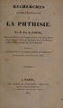 Pathological researches on phthisis ... Tr. from the French with introduction, notes, additions, and an essay on treatment / by Charles Cowan.