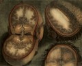 Coronal and sagittal sections of the brain, after Tarin. Engraving by Benard, late 18th century.