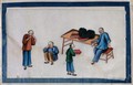 Chinese figures with street vendor. Painting by a Chinese artist, ca. 1850.