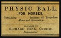 Physic ball : for horses : containing drachms of barbadoes aloes and aromatics / prepared by Richard Hine.