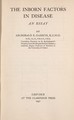 The inborn factors in disease : an essay / by Archibald E. Garrod.