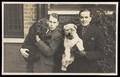 Two men holding their dogs. Photographic postcard, 193-.