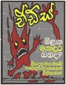 A personified blood splatter (?) against a grey background looking in alarm at the word 'AIDS/HIV' (?) in yellow Sinhalese lettering; an AIDS prevention advertisement by the Health Education Bureau of Sri Lanka. Colour lithograph, ca. 1996.