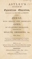 Astley's system of equestrian education, exhibiting the beauties and defects of the horse. With serious and important advice, on its general excellence, preserving it in health, grooming, &c / with plates.