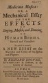 Medicina musica: or, A mechanical essay on the effects of singing, musick, and dancing, on human bodies. Revis'd and corrected. To which is annex'd, a new essay on the nature and cure of the spleen and vapours. / By Richard Browne, apothecary in Oakham, in the county of Rutland.