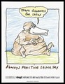 A long-nosed cartoon figure wearing a brown all-in-one suit with a speech bubble exclaiming thanks for latex; an advertisement for safer sex by the Gay Men's Health Crisis. Colour lithograph by Don Herron, 1989.