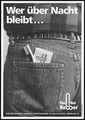 A man's back jeans pocket with a toothbrush and condom bearing the logo of The Hot Rubber Company; a safe sex advertisement by the Hot Rubber Company Deutschland. Lithograph.