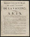 Avis : le public est prévenu que l'Hospice Central de l'Inoculation de la Vaccine est ouvert à tous les pères et mères qui voudront y faire admettre leurs enfans / Les membres du Comité, Thouret, Président; Leroux, Guillotin, Pinel, Parfait, Delaroche, Salmade, Doussin-Dubreuil, Jadelot, Lasteyrie, Marin, Mongenot, et Husson, secrétaire.