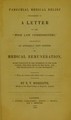 Parochial medical relief : considered in a letter to the 'Poor Law Commissioners,' developing an entirely new system of medical remuneration, alike conducive to the interests of the rate-payers, the well-being of the poor, and the respectability of the profession / by E.T. Meredith.