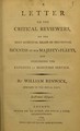 A letter to the critical reviewers, on the most effectual means of preventing sickness in His Majesty's fleets and diminishing the expences of maritime service / by William Renwick.