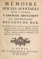 Mémoire sur les avantages qu'il y auroit à changer absolument la nourriture des gens de mer / Par M. Poissonnier Desperrières.