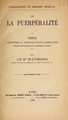De la puerpalit : the prent au Concours pour l'agration, Section de mecine et de mecine lale / par le Dr. Raymond.