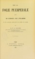 De la folie puerpérale dans ses rapports avec l'éclampsie et les accidents infectieux des suites de couches / par A. Lallier.