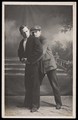 Two men demonstrating jiu-jitsu, wearing formal attire. Photographic postcard, ca. 191-.