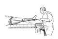 M0019188: Illustration of the application of Thomas's splint, for fractures of the femur and leg bones