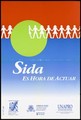 A chain of white silhouette male and female figures partly disappearing within a lime green circle against a red and blue background with the message in Spanish: 'AIDS: It is time to act'; an advertisement by the AIDAS (Asociación Internacional Derechos Afectados SIDA), Gobierno de Canarias, and UNAPRO (Union Para la Ayuda y Proteccion de los Afectados por el SIDA). Colour lithograph by A. ... G., 1997.