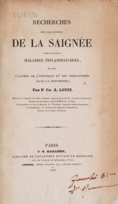 Credit: Recherches sur les effets de la saignée dans quelques maladies inflammatoires, et sur l'action de l'émétique et des vésicatoires dans la pneumonie / par P. Ch. A. Louis. Source: Wellcome Collection.