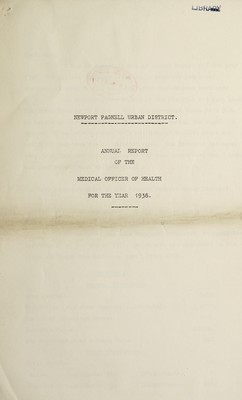 Credit: [Report 1938] / Medical Officer of Health, Newport Pagnell U.D.C. Source: Wellcome Collection.