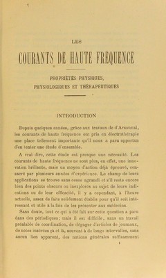 Les courants de Haute Frequence : proprietes physiques physiologiques et therapeutiques / par Le Docteur J. Denoyes.