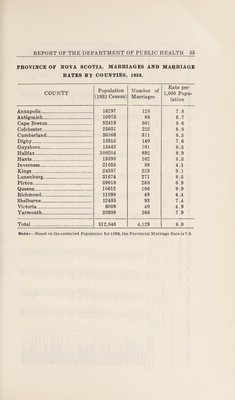 Credit: Report of the Department of Public Health for the year ending September 30th ... and of the Deputy Registrar General containing the vital statistics of the Province for the year ending December 31st ... / Province of Nova Scotia. Source: Wellcome Collection.