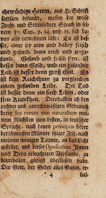 Credit: Norma diaetetica, oder, Regelmässige Abhandlung : wie ein Mensch sowohl in genere, also auch in specie, nach seinem Temperamente, Alter, Geschlechte und denen Jahreszeiten, durch den rechten Gebrauch derer so genannten sechs nicht natürlichen Dinge, als derer Gemüthsbewegungen, der Luft, Speis und Trank, der Excretorum und Retentorum, Bewegung und Ruhe, Schlafen und Wachen, sein Leben und Gesundheit nebst wenigen Arzeneyen lange erhalten, und durch den unrechtmässigen Gebrauch dererselben, dieses auch allzufrühzeitig zerstöhren kann alles vernunftmässig an und ausgeführet, und einem jedweden dem die Erhaltung seiner Gesundheit und ein langes Leben lieb ist, zum besten herausgegeben / von L. Christian Jahn. Source: Wellcome Collection.