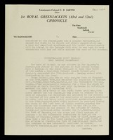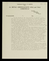 Letter from Lieutenant Colonel J.B. Jarvis, editor of the 1st Royal Greenjackets (43rd and 52nd) Chronicle, giving biographical details of nineteenth Century army medical officers