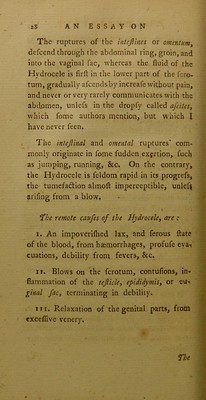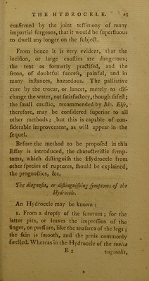 An essay on the rupture called hydrocele : explaining the anatomy of the parts affected; with objections to the incision, ... In which is communicated an improved method of radically curing that disorder ... / by Benjamin Humpage ...
