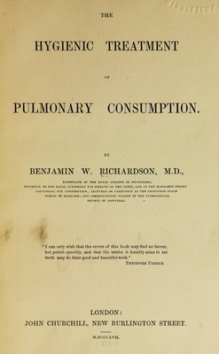 Credit: The hygienic treatment of pulmonary consumption. Source: Wellcome Collection.