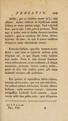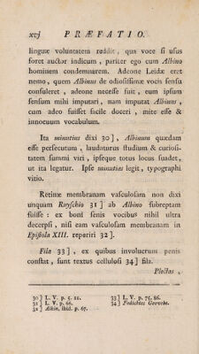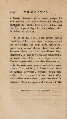 ![• • V Vir 'Summus urget , habebo tot teftes , quot viris plaeuerit easdem corporis humani partes fecare , de quibus litem mihi movit Albinus. Magna res eft veritas, & praevalebit. Si omnino erravi , magno me beneficio vir lll. adficiet, quando .vaftum meum opus erroribus liberabit , qui abfque ejus cenfura id ipfum dehoneftarent. Ideo id opus fufcepi . ut quse vera fide fub medium feculum XVIIL inno¬ tuerint , ea in compendium contrada polleri legere poffint. Legent autem plena cum fide, quando Albini cenfura accellit , nulli parcitura mendo. Ego vero 3 ut foleo, in corrigendis iis, qua; utiliter correxerit nofter Pmceptor , adeo non dolebo , ut fummae mihi voluptatis loco fit mihi, meos averruncare errores i j. : Alia ergo mihi dolendi cauta fuit. Traducor ab Albino coram tribunal , & hujus , cum quo vivo, feculi, & eorum, quse fequentur. Accufor, quod Pr<eceptorem , virum laude anatomica maxime confpicuum , vexaverim 2], provoca¬ verim s quod ei fubripere fim conatus inventa i] Vide ante hsec feriptam Oper. minor. T? l. praefationem* 2 ] _L, V. p- 136.](https://iiif.wellcomecollection.org/image/b30529141_0008_0008.jp2/full/800%2C/0/default.jpg)