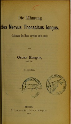 Die Lähmung des Nervus thoracicus longus (Lähmung des Musc. serratus antic. maj.) / von Oscar Berger.