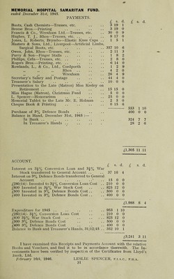 Annual report and statement of accounts : 1945 / Wrexham and East Denbighshire War Memorial Hospital.
