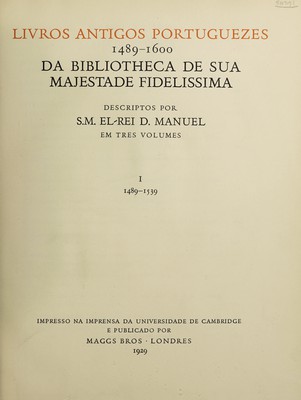 Livros antigos portuguezes 1489-1600 da bibliotheca de Sua Majestade Fidelissima / descriptos por S.M. el-rei D. Manuel.