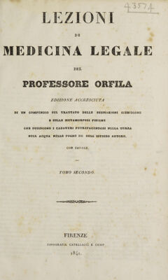 Lezioni di medicina legale ... / Ed. accresciuta di un compendio sul Trattato delle esumazioni giuridiche e sulle metamorfosi fisiche che subiscono i cadaveri putrefacendosi nella terra, nell'acqua, nelle fogne ec. dell'istesso autore [and O. Lesueur].