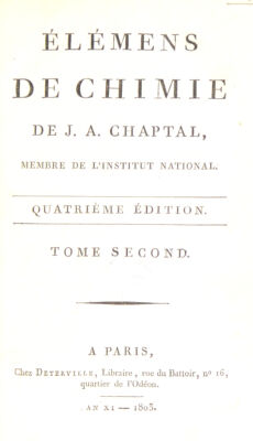Credit: Elémens de chimie / De J.A. Chaptal. Source: Wellcome Collection.