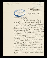Credit: 'H [general correspondence]'. Source: Wellcome Collection.
