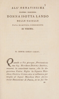Il tempio della felicità per le faustissime nozze del ... Signor Marchese Don Annibale Bellisomi di Pavia colla ... Signora Marchesa Donna Girolama Lando di Piacenza / [Carlo Proposto Carasi].