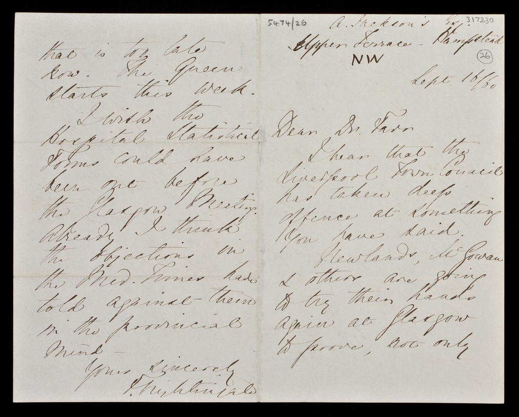 Credit: Letters to William Farr (1807-1883), statistician. Source: Wellcome Collection.