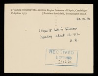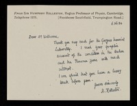 Credit: 'R [general correspondence]'. Source: Wellcome Collection.